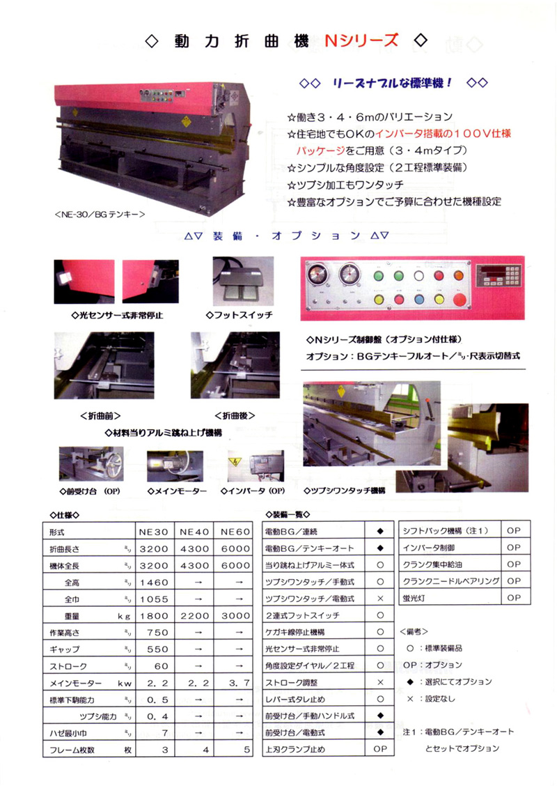 ●◇ 動力折曲機 Nシリーズ ◇<<動力折曲機>>