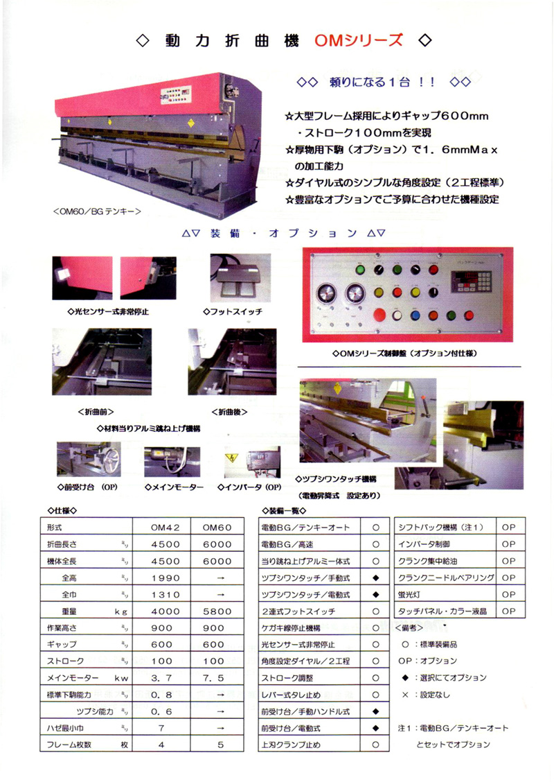 ●◇ 動力折曲機 OMシリーズ ◇<<動力折曲機>>